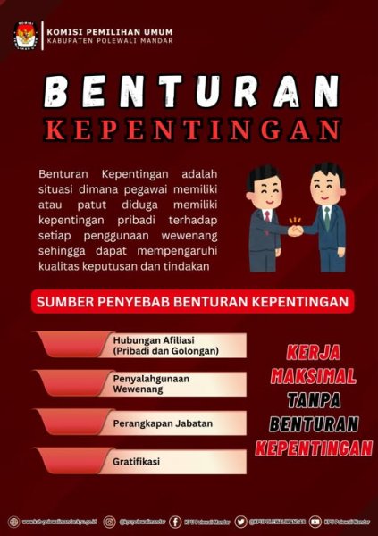 KPU Kabupaten Polewali Mandar terus menjunjung tinggi profesionalitas dan integritas dalam setiap pelaksanaan tugas. Komitmen kerja kami diarahkan sepenuhnya untuk kepentingan negara dan masyarakat, tanpa ruang bagi konflik kepentingan.