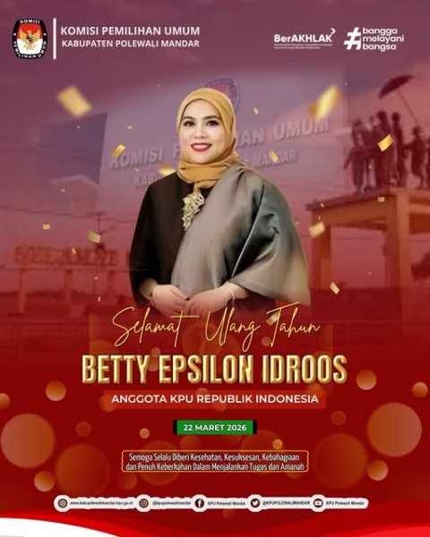 Hai #TemanPemilih Segenap Jajaran KPU Kabupaten Polewali Mandar mengucapkan Selamat Hari Ulang Tahun Ibu Betty Epsilon Idroos (Anggota KPU RI). Semoga senantiasa diberikan kesehatan dan kekuatan dalam menjalankan tugas dan amanah !