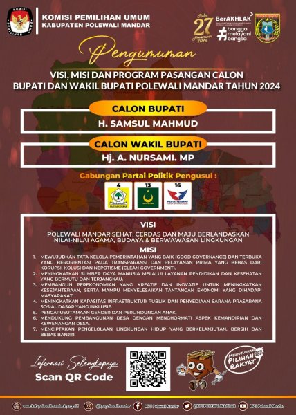 Hai #TemanPemilih Inilah Visi Misi Pasangan Calon Bupati dan Wakil Bupati Polewali Mandar dalam Pilkada Serentak Tahun 2024, Pasangan H. SAMSUL MAHMUD dengan Hj. A.NURSAMI. anggota parlemen