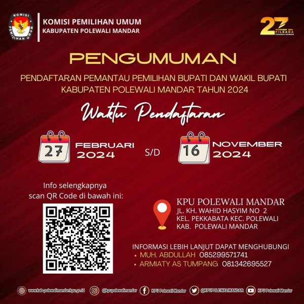 Polewali, Komisi Pemilihan Umum (KPU) Kabupaten Polewali Mandar mengumumkan perubahan Daftar Calon Tetap (DCT) Anggota DPRD Kabupaten Polewali Mandar Pemilu Tahun 2024, Polewali (21/11/2023).