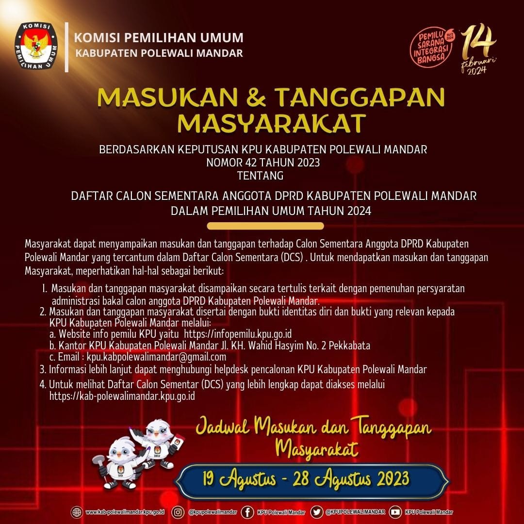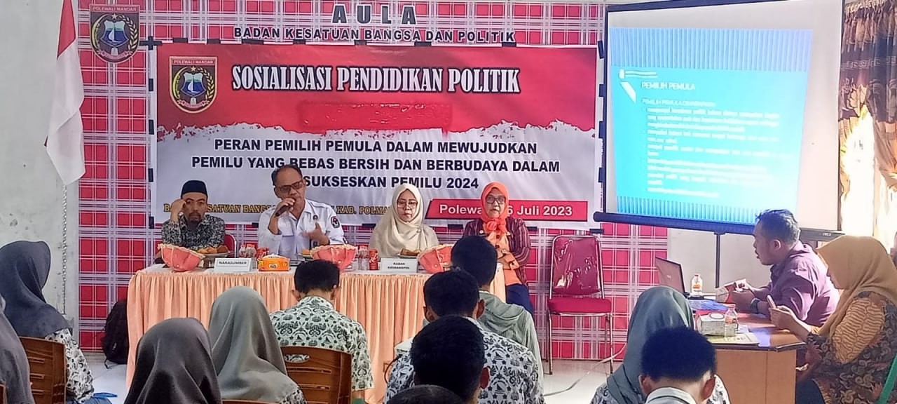 Hal tersebut diungkapkan Anggota KPU Polman Andi Rannu saat tampil sebagai salah seorang narasumber dalam kegiatan Sosialisasi Pendidikan Politik dengan tema "Peran Pemilih Pemula dalam Mewujudkan Pemilu yang Bebas, Bersih dan Berbudaya dalam Mensukseskan Pemilu 2024," yang dilaksanakan Badan Kesatuan Bangsa dan Politik (Kesbangpol) Kabupaten Polman di Aula Kantor Kesbangpol, Polewali Mandar, Kamis (6/7) pagi. Kekgiatan ini diikuti oleh sejumlah peserta yang berasal dari sejumlah Sekolah Menegah Atas (SMA) se-Kabupaten Polewali Mandar
