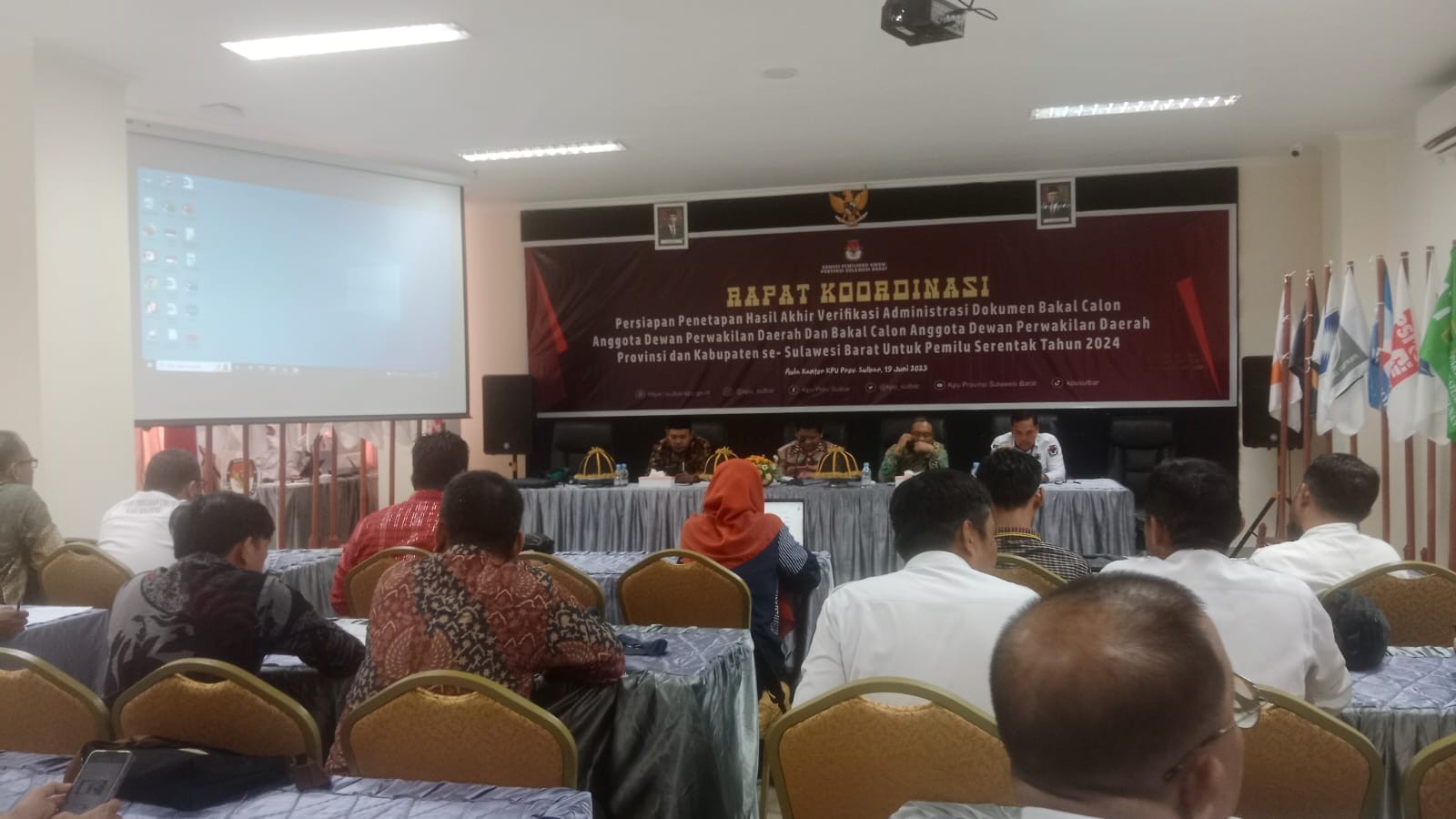 Surabaya, kab-polewalimandar. kpu. go. Id - KPU Kabupaten Polewali Mandar mengikuti Rapat Koordinasi Nasional Perencanaan Logistik Pemilu Tahun 2024 di Vasa Hotel Surabaya. Jum'at - Minggu (23-26/6/2023). Kegiatan tersebut membahas Tata Kelola Logistik Pemilu mulai dari Tahap Perencanaan , Pengadaan, Pemeliharaan, Pendistribusian, Penyimpanan dan Pengawasan dengan semboyan target : "No Mistake, Zero Accident". Pada rakornas ini juga disampaikan perencanaan penggunaan versi terbaru SILOG pada Tahapan Logistik Pemilu 2024. Rapat Koordinasi Nasional dalam rangka Penyusunan Kebutuhan dan Biaya Logistik Pemilu Tahun 2024 Gelombang III ini dibuka langsung oleh Anggota KPU Yulianto Sudrajat, Betty Epsilon Idroos, dan Idham Holik bersama Sekretaris Jenderal KPU Bernad Dermawan Sutrisno serta Gubernur Jawa Timur Khofifah Indar Parawansa membuka Rapat Koordinasi Nasional dalam rangka Penyusunan Kebutuhan dan Biaya Logistik Pemilu Tahun 2024 Gelombang III di Surabaya. Dalam sambutan pembukaan, Anggota KPU RI Yulianto Sudrajat menyampaikan terkait aspek logistik pemilu, semua harus tepat waktu, tepat jenis, tepat sasaran, tepat jumlah dan presisi. Anggota KPU RI, Betty Epsilon dalam arahannya mengatakan data pemilih yang telah ditetapkan akan menjadi hulu untuk kebutuhan penyusunan kebutuhan logistik dan teknis, baik data dalam maupun luar negeri. Sementara itu, Anggota KPU RI, Idham Holik menyebutkan bahwa puncak pemilu berintegritas ada pada saat KPU bisa memberikan pelayanan terbaik kepada para pemilih pada hari pemilihan ataupun sebelumnya. Di akhir arahan, Sekretaris Jenderal KPU RI, Bernad Dermawan Sutrisno menekankan khususnya kepada sekretariat KPU di setiap tingkatan, agar serius dalam merumuskan berbagai strategi dan standar teknis pengadaan dan distribusi logistik pemilu, serta selalu menjaga integritas dan loyalitas dalam memberikan pelayanan teknis dan administratif penyelenggaraan Pemilu Serentak 2024. Sementara itu, Ketua Kabupaten Polewali Mandar yang ikut hadir mengapresiasi kegiatan tersebut dan mengatakan kegiatan ini sangat penting karena dengan perencanaan logistik yang matang diharapkan dapat berjalan sesuai dengan semboyan "No Mistake, Zero Accident" kegiatan ini. Hadir pula dalam kegiatan tersebut, jajaran Pejabat Eselon I dan II Setjen KPU, Kepala Bakesbangpol dan Kepala Biro Pemerintahan Jawa Timur, Ketua, Anggota, dan Sekretaris KPU provinsi dan kabupaten/kota dari 14 provinsi.(Humas/KPUPolman)