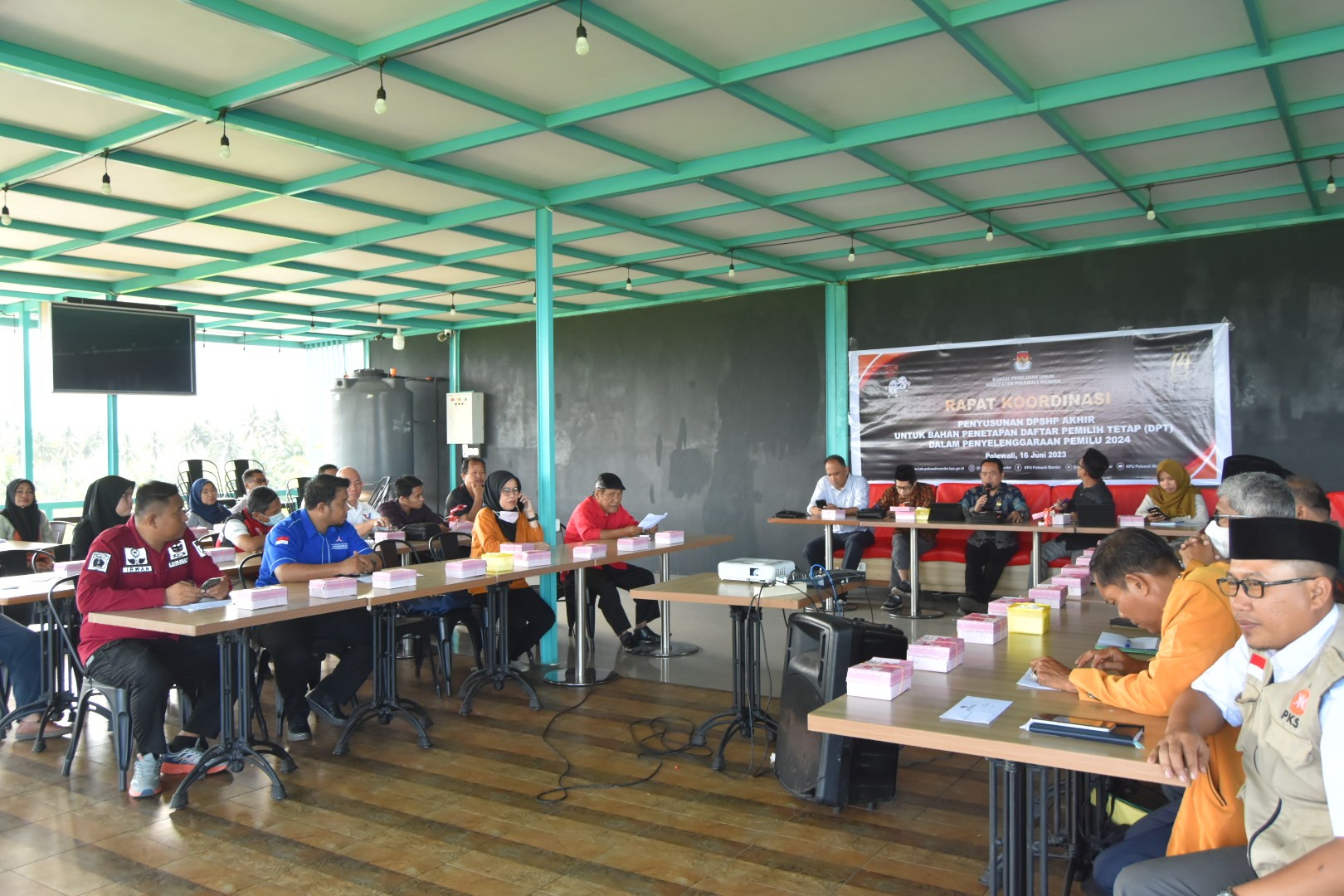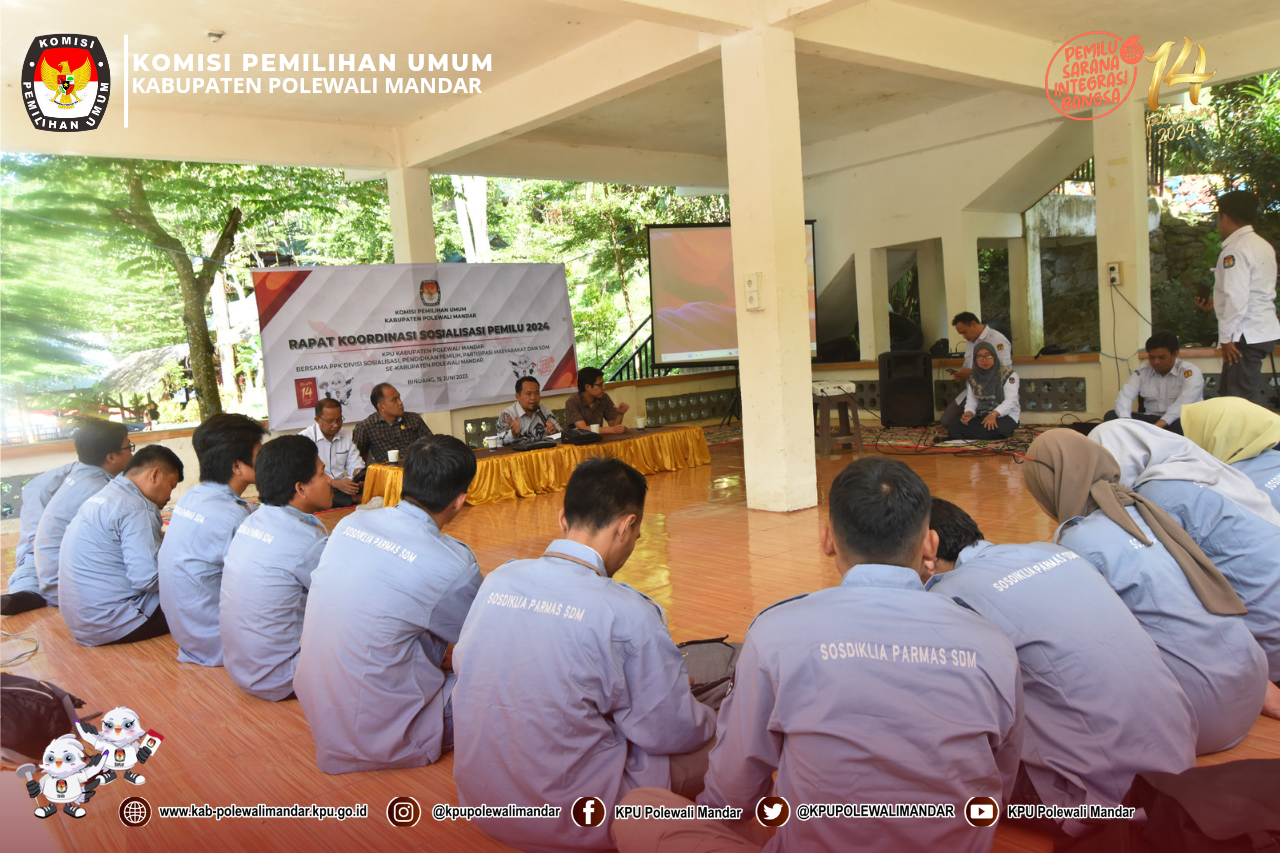 Binuang, kab-polewalimandar. kpu. go. Id - Dalam rangka peningkatan partisipasi masyarakat dalam Pemilihan Umum Tahun 2024, KPU Kabupaten Polewali Mandar mengelar Rapat Koordinasi Sosialisasi Pemilu 2024 bersama Anggota PPK Divisi Sosialisasi, Pendidikan Pemilih, Partisipasi Masyarakat Se - Kabupaten Polewali Mandar di Kali Biru Desa Batetangnga Kecamatan Binuang. Kamis (15/6/2023). Dalam sambutan pembukaan, Ketua KPU Kabupaten Polewali Mandar, Rudianto menyampaikan bahwa rapat koordinasi hari ini bertujuan untuk mengevaluasi kegiatan PPK dan PPS dalam melakukan kegiatan sosialisasi pendidikan pemilih ke masyarakat sekaligus membahas terkait persiapan pelaksanaan Kirab Pemilu 2024. "Dengan dilaksanakan rapat koordinasi sosialisasi Pemilu 2024 ini, akan ada tindak lanjut dari hasil evaluasi kegiatan sosialisasi pendidikan pemilih dan meminta kepada PPK berperan aktif dalam Kirab Pemilu 2024 yang akan dilaksanakan pada tanggal 21 s/d 25 Juni 2023 mendatang",ucap Rudianto. Ketua Divisi Hukum dan Pengawasan KPU Kabupaten Polewali Mandar, Andi Rannu dalam kesempatan tersebut mengingatkan PPK selaku penyelenggara Adhoc untuk senantiasa menjaga etika, perilaku, dan sikap sebagaimana tugas, wewenang, kewajiban dan tanggungjawab yang telah digariskan dalam aturan baik UU Pemilu maupun PKPU. "Sebagai penyelenggara pemilu sangat dibutuhkan soliditas, fokus, konsentrasi, demi menjaga ritme kerja dan terus berada dalam semangat yang sama dalam melaksanakan tugas-tugas yang ada," kata Andi Rannu. Ketua Divisi Teknis Penyelenggaraan Pemilu KPU Kabupaten Polewali Mandar, Nurjannah Waris dalam arahannya meminta kepada PPK untuk berperan aktif dan berkreatifitas dalam melakukan sosialisasi pendidikan pemilih kepada masyarakat. "Banyak cara yang dapat dilakukan oleh teman - teman adhock lakukan dalam melaksanakan sosialisasi pendidikan pemilih kepada masyarakat, baik itu kerjasama Pemerintah Kecamatan, Pemerintah Desa/Kelurahan, Pihak Sekolah/Perguruan Tinggi, Kelompok Masyarakat, sosialisasi di rumah ibadah, penyebaran sticker ataupun pamplet sosialisasi dan ini pernah kami lakukan sewaktu kami pernah menjadi seperti kalian", terang Nurjannah Waris. Ketua Divisi Sosialisasi, Pendidikan Pemilih, Partisipasi Masyarakat, SDM KPU Kabupaten Polewali Mandar, Munawir Ariffin dalam kegiatan tersebut menyampaikan bahwa Divisi Sosialisasi, Pendidikan Pemilih, Partisipasi Masyarakat dan SDM di tingkat PPK dan PPS adalah garda terdepan dalam menyampaikan informasi terkait kepemiluan kepada masyarakat, karena tujuan utama divisi ini yaitu mendorong peningkatan partisipasi pemilih pada pemilu 2024. "Divisi Sosialisasi, Pendidikan Pemilih, Partisipasi Masyarakat dan SDM dibentuk untuk melakukan Sosialisasi Pendidikan Pemilih untuk meningkatkan partisipasi pemilih pada Pemilu oleh karena diharapkan kepada PPK dan PPS untuk melakukan sosialisasi secara masif baik secara tatap muka maupun melalui media sosial",harap Munawir Ariffin. Sementara itu, Sekretaris KPU Kabupaten Polewali Mandar, Baharuddin menyampaikan dalam rangka fasilitas pelaksanaan sosialisasi KPU Kabupaten Polewali Mandar perlu merencakan dan menganggarkan kegiatan sosialisai ditingkat PPK dan PPS dalam rangka peningkatan partisipasi pemilih Pemilu Tahun 2024 dan membentu agen-agen sosialisasi pada Sekolah SLTA, Perguruan Tinggi dan pelosok desa yang rendah tingkat partisipasinya pada pemilu sebelumnya untuk membantu peningkatan partisipasi masyarakat dalam Pemilu. "Rancangan anggaran Sosialisasi Pendidikan Pemilih ini diperlukan dengan melihat kegiatan sosialisasi penyelenggaraan pemilu sebelumnya dan meminta kepada PPK dan PPS untuk membentuk agen - agen sosialisasi di Sekolah SLTA, Perguruan Tinggi dan pelosok Desa yang rendah tingkat partisipasi pemilihnya rendah pada Pemilu sebelumnya untuk membantu mensosialisasikan terkait informasi kepemiluan",jelas Baharuddin. Lebih lanjut, Ketua Divisi Perencanaan, Data dan Informasi KPU Kabupaten Polewali Mandar, Muslim Sunar meminta kepada PPK melakukan pendataan SLTA di masing-masing Kecamatan dan mensosialisasikan terkait proses pindah memilih kepada masyarakat. "Pertama saya meminta kepada PPK untuk melakukan pendataan terhadap SLTA di wilayah masing-masing, kedua PPK melakukan foto dengan twitbon dengan tulisan saya telah terdaftar dalam daftar pemilih dan mengupload ke media sosial, ketiga mensosialisasikan kepada masyarakat terkait pindah pemilih", ujar Muslim Sunar. Hadir pula dalam kegiatan tersebut, Kasubag Teknis dan Humas bersama staf. (Humas/KPUPolman).