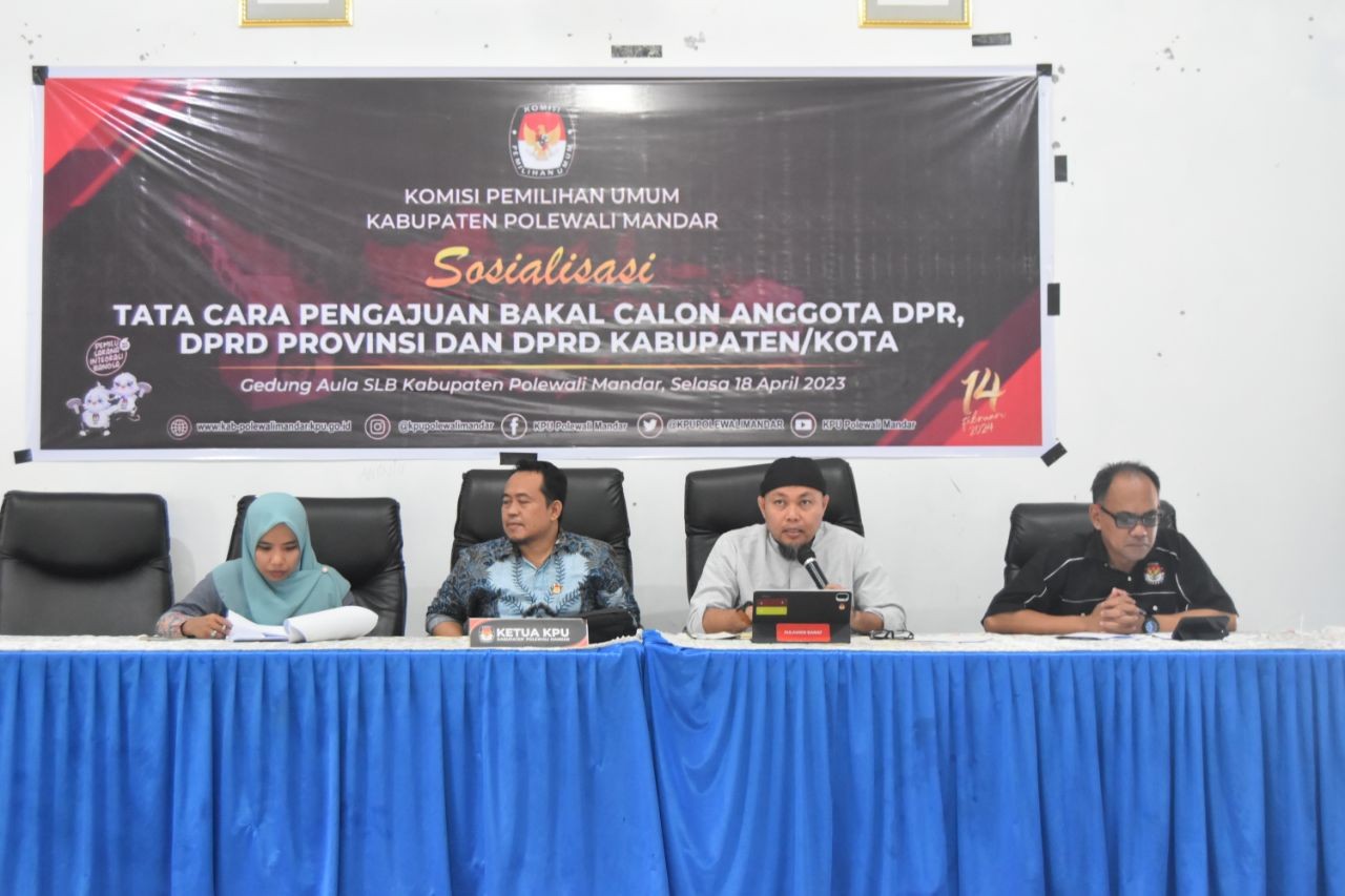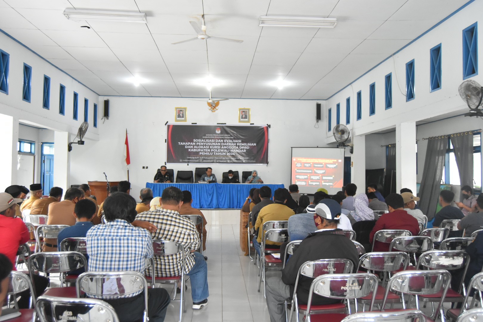 Polewali - KPU Kabupaten Polewali Mandar menggelar Sosialisasi Daerah Pemilihan dan Alokasi Kursi serta Evaluasi Tahapan Penyusunan Daerah Pemilihan Pemilu Tahun 2024 yang dilaksanakan di Gedung Aula SLB Kabupaten Polewali Mandar. Selasa (18/04/2023).