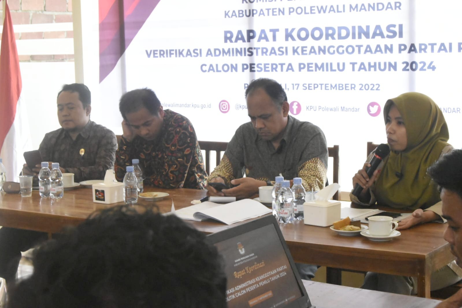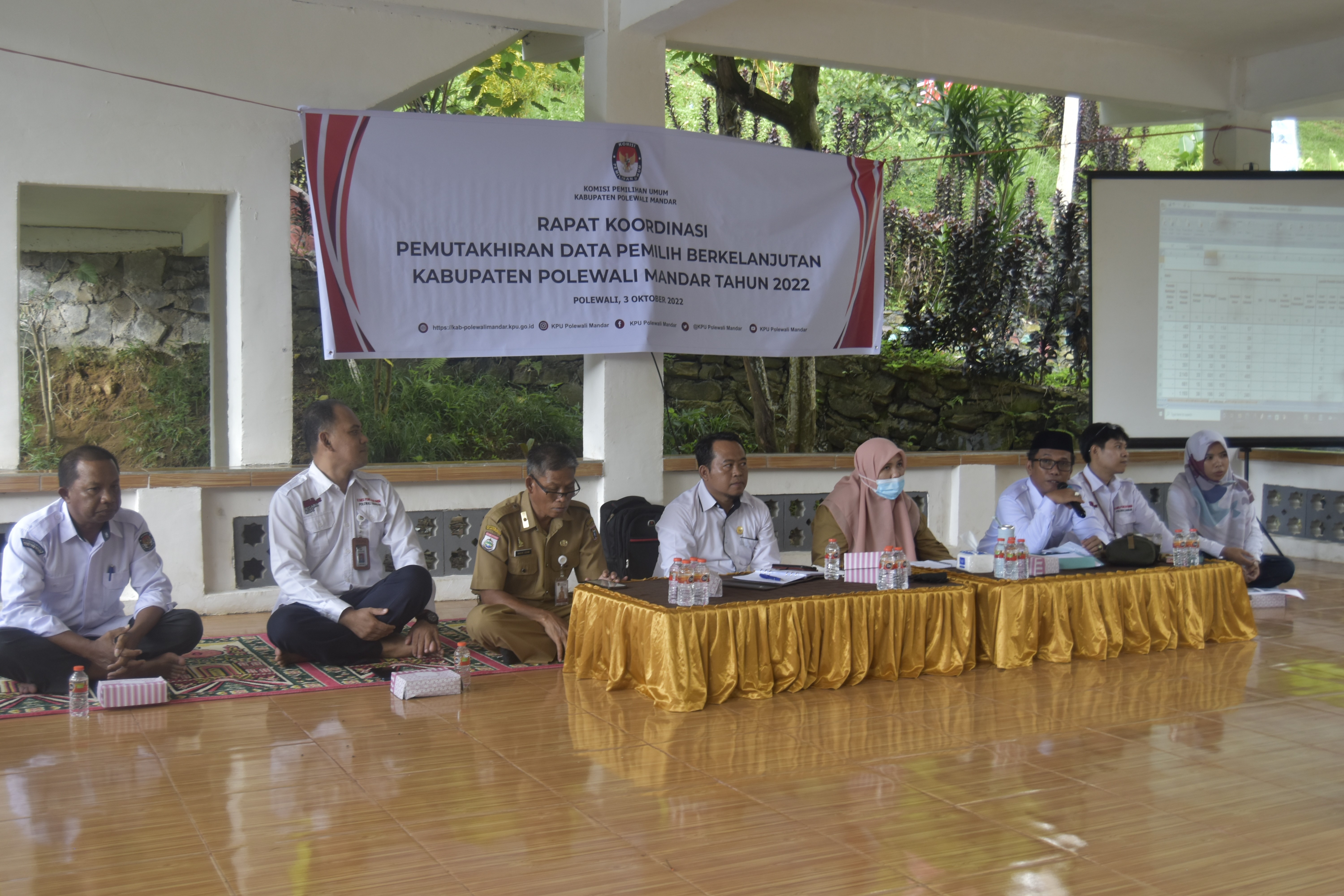 Binuang - Komisi Pemilihan Umum Kabupaten Polewali Mandar melaksanakan Rapat Koordinasi Pemutakhiran Data Pemilih Berkelanjutan (DPB) Tahun 2022. Kegiatan ini di gelar di Tempat Wisata Kalibiru, Kanang Desa Batetangnga, Kecamatan Binuang, Polewali Mandar. Senin (3/10/2022). Ketua KPU Kabupaten Polewali Mandar, Rudianto dalam sambutannya mengatakan bahwa pemutakhiran Daftar Pemilih Berkelanjutan (DPB) dengan maksud untuk memudahkan dalam pemutakhiran data pada pelaksanaan Pemilu tahun 2024 nantinya. "Pemutakhiran Daftar Pemilih Berkelanjutan (DPB) diprogramkan dengan maksud untuk memudahkan dalam pemutakhiran dan penyusunan data pemilih pada pelaksanaan Pemilu dan pemilihan tahun 2024 nantunya". "Jika melihat tahapan Pemilu 2024 maka tanggal 14 Oktober 2022 sudah masuk tahapan Pemutakhiran Data Pemilih pada Pemilu 2024 sehingga pemutakhiran DPB sudah tidak lagi dilaksanakan", kata Rudianto. Anggota KPU Provinsi Sulawesi Barat, Sukmawati M.Sila dalam arahannya menyampaikan bahwa KPU Kabupaten Se-Sulawesi Barat telah bekerja maksimal menciptakan data pemilih yang komprehensif, akurat dan mutakhir. "KPU telah bekerja maksimal dalam mencocokkan data pemilih dengan data Sistem Informasi Administrasi Kependudukan (SIAK) yang menjadi sumber data, ada beberapa kesalahan dalam penulisan nik sehingga KPU perlu melakukan verifikasi faktual ke lapangan, kami juga berharap Pemerintah desa untuk memperbaiki data administrasi kependudukan sehingga bisa menjadi rujukan KPU dalam pemutakhiran data pemilih",jelas Sukmawati M. Sila. Ketua Divisi Perencanaan, data dan Informasi KPU Kabupaten Polewali Mandar, Muslim Sunar mengatakan masih ada Potensi Pemilih Baru sekitar 55.972 dari data Sistem Informasi Administrasi Kependudukan (SIAK) Tahun 2021. "Dari data SIAK Tahun 2021, masih ada sekitar 55.972 potensi pemilih baru, sekitar 21.022 yang telah melakukan perekaman KTP El dan yang belum melakukan perekaman KTP El sekitar 34.950 pemilih , untuk itu kami berharap Dinas Kependudukan dan Pencatatan Sipil Kabupaten Polewali Mandar untuk terus dapat melakukan perekaman KTP El ", harap Muslim Sunar. Selain itu, Muslim Sunar juga mengatakan agar stakeholder terkait agar membantu KPU dalam penyusunan daftar pemilih Pemilu Tahun 2024. " DPB ini dalam rangka penyiapan data Pemilu 2024 dan bahan mapping TPS, kami membutuhkan data siswa, data pensiun TNI/Polri, data belum perekaman e-KTP, data meninggal, data pegawai RSUD karena akan menjadi rujukan dalam pembuatan TPS, data menikah di bawah umur oleh karena itu kami berharap dukungan stakeholder agar turut andil membantu KPU dalam penyusunan daftar pemilih tahun 2024", katanya. Ketua KPU Kabupaten Polewali Mandar , Rudianto membacakan Berita Acara Hasil Rekapitulasi Pemutakhiran Daftar Pemilih Berkelanjutan Triwulan III Tahun 2022. "Hasil Rekapitulasi Pemutakhiran Data Pemilih Berkelanjutan Triwulan III sebanyak 321.283 pemilih terdiri dari Pemilih Laki-laki berjumlah 157.846 dan Pemilih Perempuan berjumlah 163.437 pemilih tersebar di 16 Kecamatan Kabupaten Polewali Mandar", jelas Rudianto. Hadir dalam kegiatan tersebut selain Ketua dan Anggota KPU Kabupaten Polewali Mandar, hadir pula Anggota Bawaslu Kabupaten Polewali Mandar, Sumarding, Kepala Dinas Kependudukan dan Pencatatan Sipil Kabupaten Polewali Mandar, Nasir Adam, Kepala LAPAS Kelas II B diwakili oleh Kasubsi Registrasi Lapas kelas II B, Asriani Dermawan, Ka. Polres Polewali Mandar diwakili oleh Kasat Intel Polres Polman, Iptu Dede Iskandar Dinata , Dandim 1402 Polewali Mandar di wakili oleh Danramil 01/Polewali, Kapt.Inf Syarifuddin , Kepala RSUD H. Andi Depu Polewali Mandar, diwakili oleh Kepala Seksi Pelayanan Kepegawaian RSUD H. Andi Depu Polewali Mandar, Suraidah Yusuf dan Sekretaris KPU Kabupaten Polewali Mandar, Baharuddin bersama jajarannya. (Humas/KPU Polman). Editor:IA Foto: AD