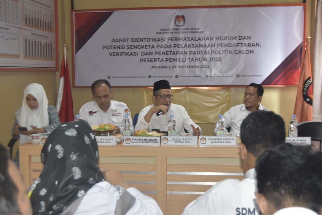Polewali - Komisi Pemilihan Umum Kabupaten Polewali Mandar ikuti Rapat Koordinasi Penanganan Pelanggaran Administrasi Proses Pemilu 2024 Lingkungan KPU Provinsi dan KPU Kabupaten Se-Sulawesi Barat yang di inisiasi oleh KPU Provinsi Sulawesi Barat di Aula Hotel Al-Ikhlas Jl. Budi Utomo Kel. Pekkabata - Polewali Mandar, Sulawesi Barat. Jum'at (23/9/2022). S.Muchtadin Al Attas, S.H., M.H selaku Narasumber dalam kegiatan tersebut memapaparkan materi terkait Teknik Pembuatan Jawaban Tertulis Pelanggaran Administrasi Pemilu. "Pelanggaran Administratif Pemilu adalah perbuatan atau tindakan yang melanggar tata cara, prosedur, atau mekanisme yang berkaitan dengan administrasi pelaksanaan Pemilu dalam setiap tahapan penyelenggaraan Pemilu" papar S.Muchtadin Al Attas. Tambahnya lagi, Cara yang dianggap sesuai dengan tuntutan teknis peradilan, dalam hal jawaban berisi eksepsi dan bantahan terhadap pokok perkara. "Inti dari jawaban adalah membantah semua dalil-dalil yang diajukan pelapor", tambahnya. Ketua KPU Kabupaten Polewali Mandar, Rudianto dalam kegiatan tersebut menyampaikan bahwa materi terkait pembuatan jawaban tertulis pelanggaran administrasi Pemilu akan menambah wawasan dan pengetahuan dalam penyelesaian permasalahan hukum kedepannya. "Terima kasih atas kepercayaan KPU Provinsi Sulawesi Barat yang telah mempercayakan sebagai tuan rumah pelaksanaan kegiatan Rakor ini. Salah satu hal yang menarik dalam kegiatan tersebut adalah materi terkait tata cara penyusunan jawaban terhadap laporan pelanggaran administrasi pemilu, ini akan menambah wawasan dan pengetahuan dalam penyelesaian permasalahan hukum kedepannya", kata Rudianto. Ketua Divisi Hukum dan Pengawasan KPU Kabupaten Polewali Mandar, Andi Rannu mengapresiasi pelaksanaan rakor kali ini, mengingat pentingnya materi yang ada dalam rakor kali ini. "Kegiatan rakor kali ini sangat menarik dengan materi terkait tata cara penyusunan jawaban terhadap laporan pelanggaran administrasi pemilu. Ini jelas akan memperkaya dan menambah pengetahuan terutama bagi kami Divisi Hukum di tingkat satker kabupaten dalam menghadapi laporan atas dugaan pelanggaran administrasi pemilu misalnya bila nantinya ada," jelas Andi Rannu. Sementara itu, Ketua Divisi Teknis Penyelenggaraan KPU Kabupaten Polewali Mandar, Nurjannah Waris dalam kegiatan tersebut menyampaikan bahwa kegiatan ini memberikan pemahaman kembali kepada seluruh jajaran KPU terkait bagaimana teknis pembuatan jawaban terkait pelanggaran administrasi serta sistematis proses pemberian jawaban. "Diperlukan langkah untuk memitigasi beberapa persoalan yang mungkin muncul, sehingga memudahkan dalam menyusun Jawaban tertulis jika terjadi pelanggaran administrasi", ujar Nurjannah Waris. Kegiatan tersebut dihadiri oleh Ketua dan Anggota KPU Provinsi Sulawesi Barat, Sekretaris KPU Provinsi Sulawesi Barat bersama jajarannya, Sekretaris KPU Kabupaten Se-Sulawesi Barat, Kepala Sub Bagian Hukum dan SDM Sekretariat KPU Se-Sulawesi Barat dan Kepala Sub Bagian Teknis dan Hupmas Sekretariat KPU Se-Sulawesi Barat. (Humas/KPUPolman) Editor : IA Foto: AD