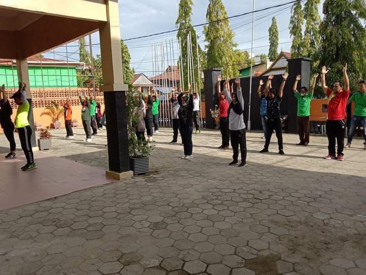Polewali, Jum’at 28 Januari 2022 bertempat di Halaman Kantor KPU Kabupaten Polewali Mandar telah dilaksanakan kegiatan Senam pagi bersama yang diikuti oleh Anggota Komisioner KPU Polewali Mandar, Sekretaris dan Para Kepala Sub Bagian dan Segenap staf, Mahasiswa/Mahasiswi yang melakukan Kuliah Kerja Lapangan (KKL). Senam pagi diadakan di halaman kantor Kantor KPU Kabupaten Polewali Mandar dipandu oleh instruktur senam profesional yang berpengalaman. Senam pagi merupakan suatu aktifitas fisik yang perlu diadakan untuk menjaga kebugaran jasmani para pegawai. Gerakan-gerakan senam pagi bermanfaat untuk melatih otot-otot pada tubuh, melancarkan peredaran darah sehingga lebih sehat dan segar. Paparan sinar matahari pagi juga bagus bagi tubuh karena kandungan vitamin D alaminya. Jika tubuh sehat dan bugar secara fisik, maka kemampuan konsentrasi juga akan meningkat dan memudahkan dalam menyelesaikan pekerjaan sehari-hari. Senam juga dapat memperkuat tulang, membantu menormalkan aliran darah dan melatih urat saraf yang kaku serta meningkatkan kesehatan jantung dan stamina tubuh. Olahraga ini juga bisa menjaga fungsi otak, mencegah pikun, juga bisa mengurangi stress dan membuat lebih bahagia karena dengan kita melakukan gerakan senam maka tubuh akan melepaskan hormon endorphine.Dengan dilaksanakanya kegiatan senam pagi tersebut diharapkan dapat menjaga kondisi tubuh seluruh pegawai KPU Kabupaten Polewali Mandar agar tetap fit dan bugar serta dapat melaksanakan kegiatan bekerja dengan optimal.(Humas/KPU Polewali Mandar).