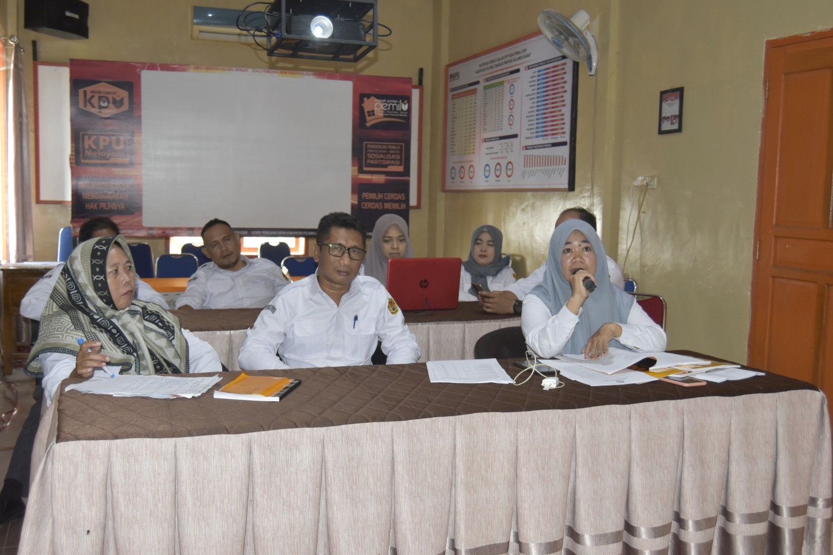 Jakarta: Anggota KPU Polewali Mandar, Nurjannah Waris, Munawir Ariffin beserta Kasubag Teknis yang diwakili Ahmad Bestari dan Operator Sistem Informasi Partai Politik (SIPOL), Muhammad Anas mengikuti Bimbingan Teknis Pendaftaran, Verifikasi dan Penetapan Partai Politik yang dilaksanakan KPU RI di Grand Hotel Sahid Jakarta (23/7/2022). Kegiatan yang dihelat selama lebih kurang 5 (lima) hari tersebut dibuka langsung oleh Ketua KPU RI, Hasyim Asyari. Dihadapan seluruh peserta yang hadir, Hasyim menyampaikan pentingnya memahami tugas dan wewenang sebagai penyelenggara Pemilu. "Penting juga memahami ruang lingkup tugas dan wewenang kita. Termasuk dalam bimtek ini yang akan memimpin adalah pimpinan kalian di provinsi. Jadi, cara berfikirnya demikian", tegas Hasyim Selain itu Hasyim juga menyampaikan tentang pentingnya 3 (tiga) hal yang harus dicapai dalam Bimtek ini, yaitu capaian pada aspek kognitif, afektif, dan psikomotorik. Termasuk pemahaman yang sama terkait PKPU No. 3 dan PKPU No. 4. "Ada tiga capaian dalam kegiatan ini, pertama adalah, kognitif, sudah paham atau belum, klo pulang dari sini harus sudah paham. Kedua adalah, afektif, pentingnya sikap loyal pada pimpinan KPU. Dan ketiga adalah aspek psikomotorik, bukan sekedar tahu, paham tapi juga disiplin mengikuti juknis termasuk keterampilan", tambah Hasyim sekaligus membuka acara Bimtek. Pemaparan dan arahan juga diberikan oleh Anggota KPU RI l, Idham Kholik dimana beliau meyakini sekaligus berharap pemilu kedepan jauh lebih baik di bawah kepemimpinan Ketua KPU RI Hasyim Asyari. "Mas Ketua sudah menjelaskan intisari materi bimtek ini. Berharap pemilu kedepan jauh lebih baik di bawah kepemimpinan kita Mas Ketua Besar. Saya harap pertemuan seperti ini harus dirutinkan", ucap Idham disambut tepuk tangan oleh peserta Bimtek. Idham Kholik juga menambahkan bahwa Bimtek ini adalah sarana transfer pengetahuan hukum, sekaligus menguatkan integritas, seluruh anggota KPU. "Bimtek ini adalah sarana pertemuan, sarana transfer pengetahuan hukum. Pentingnya kita memahami PKPU 3 dan 4, serta PKPU sebelumnya terkait PKPU Pendaftaran, Verifikasi dan Penetapan Partai Politik. Dan saya juga berharap KPU lebih baik, profesional, berintegritas. Ini dilakukan oleh seluruh anggota KPU. Serta sayameyakini Pemilu kedepan zero despiute, atau tidak ada (nol) sengketa. Dua hal tersebut diatas setidaknya akan jadi modal bagi jajaran penyelenggara, khususnya KPU dalam rangka meningkatkan public trust (kepercayaan publik)", lanjut Idham yang juga Ketua Divisi Teknis Penyelenggaraan KPU RI. Kegiatan Bimtek ini dilaksanakan secara terpisah di 3 (tiga) tempat secara daring dan luring terintegrasi, dihadiri Ketua dan 5 (lima) anggota KPU RI, Sekjend KPU RI dan jajarannya, 34 perwakilan KPU Provinsi Divisi Teknis Penyelenggaraan dan Divisi Data dan Informasi (Datin), seluruh anggota KPU Kab/Kota Divisi Teknis penyelenggaraan dan Datin, Kasubag Teknis, serta staf operator. (Humas/KPU Polman)